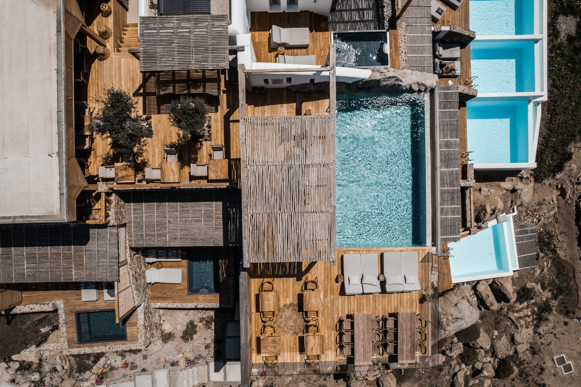 Each suite at Alissachni is thoughtfully designed to offer a harmonious blend of natural materials and understated elegance, fostering an atmosphere of relaxation and well-being. Guests can enjoy private verandas, heated Jacuzzis, and pools overlooking the sea, creating a seamless connection between luxury and nature. The Silver, Deluxe, Junior, Superior, Premium, Executive, and Golden Suites each offer unique features, from panoramic sunset views and expansive terraces to private pools and high-tech amenities, ensuring a personalized and indulgent stay.