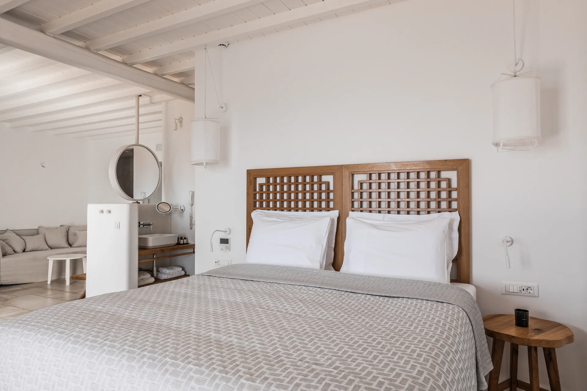 Much more than a simple holiday destination, Alissachni Mykonos is a luxury boutique hotel perched on a hillside near the iconic Psarou Beach, just 5km from the vibrant town centre. With unobstructed views of the Aegean Sea and the picturesque Cycladic architecture of Saint Lazaros, this serene retreat embodies the essence of Greek island living.