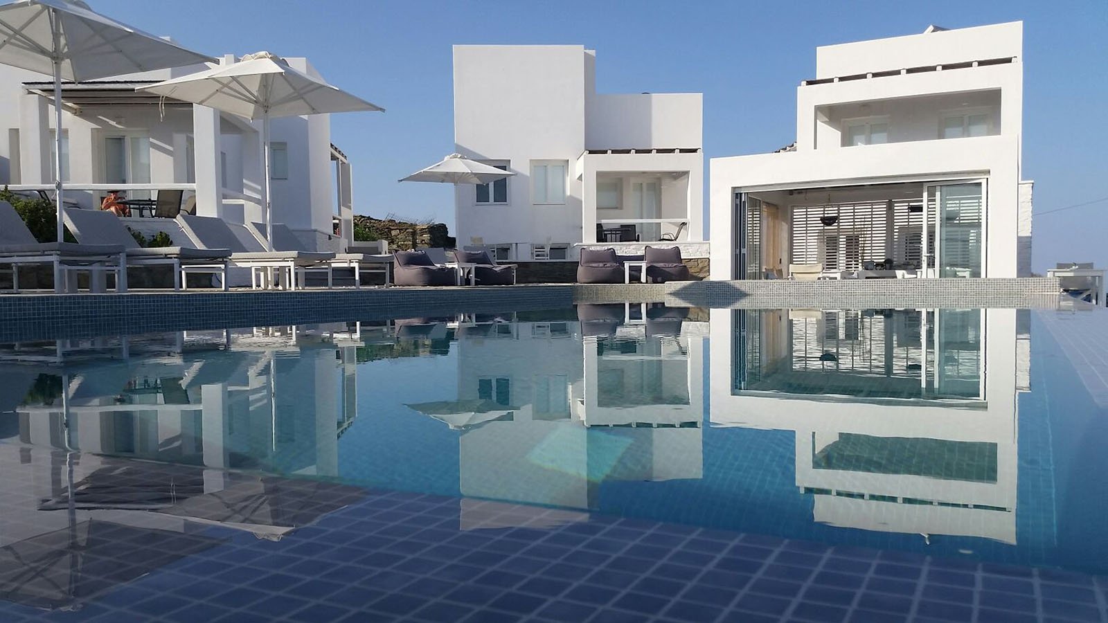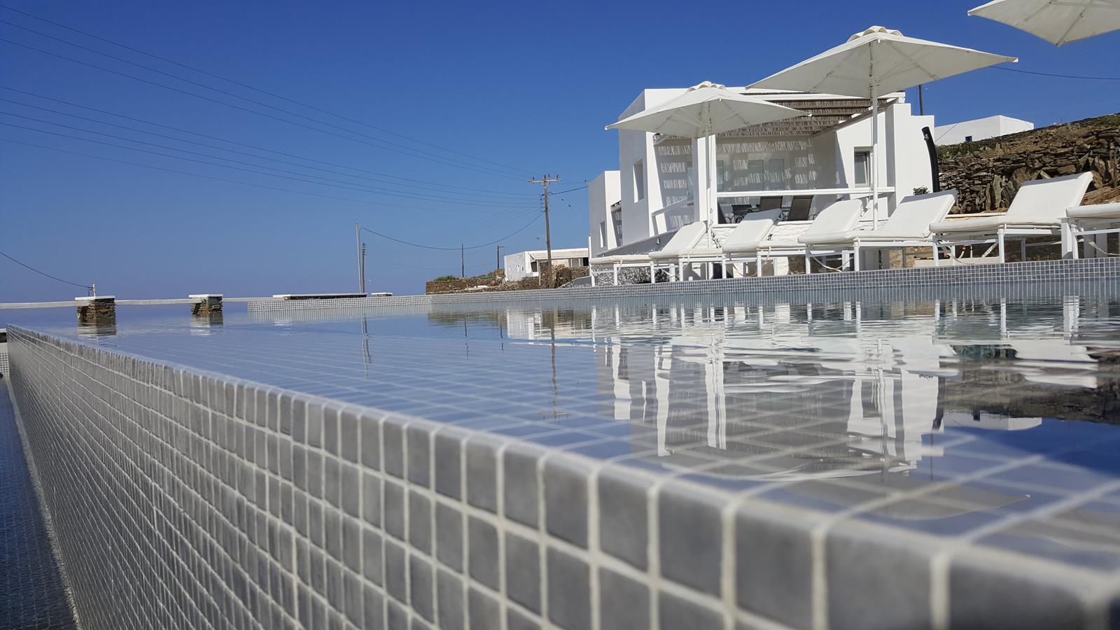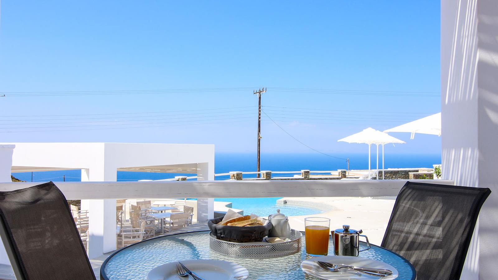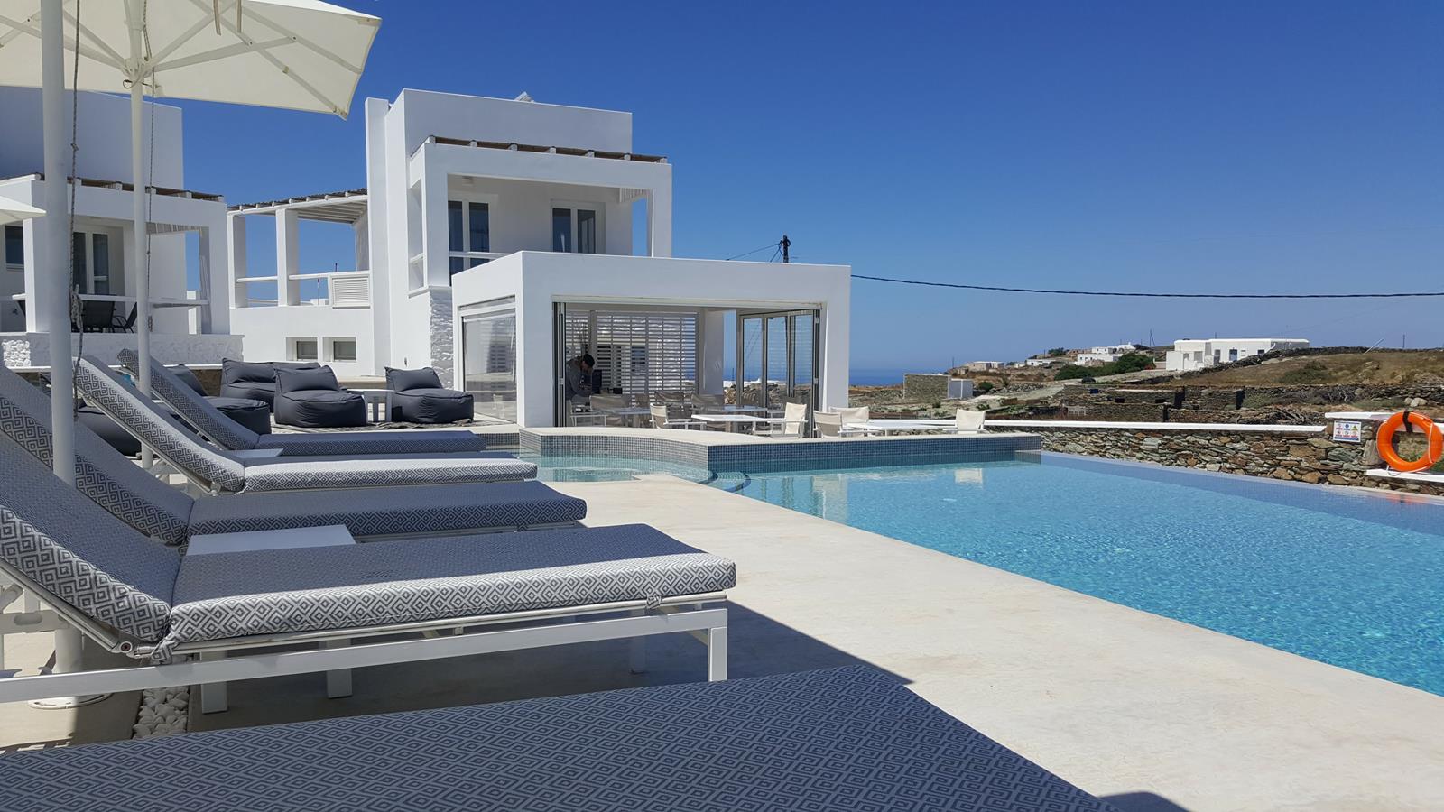 Every villa includes a 32” LED flat-screen TV with cable channels and a 10-inch tablet for browsing, perfect for guests who want to stay connected while enjoying the serenity of their private terrace. At the heart of the property, guests can relax at the shared pool and poolside snack bar, where breakfast and lunch are served daily, making it easy to spend long, lazy days without ever leaving the grounds.