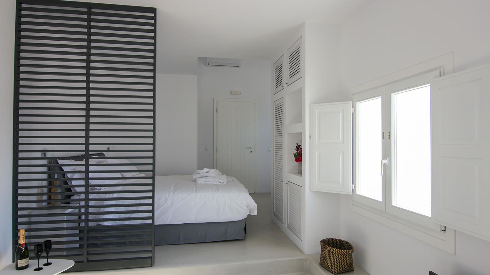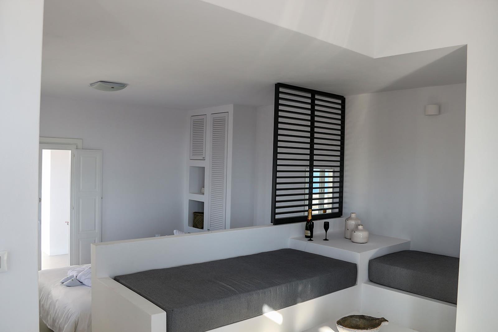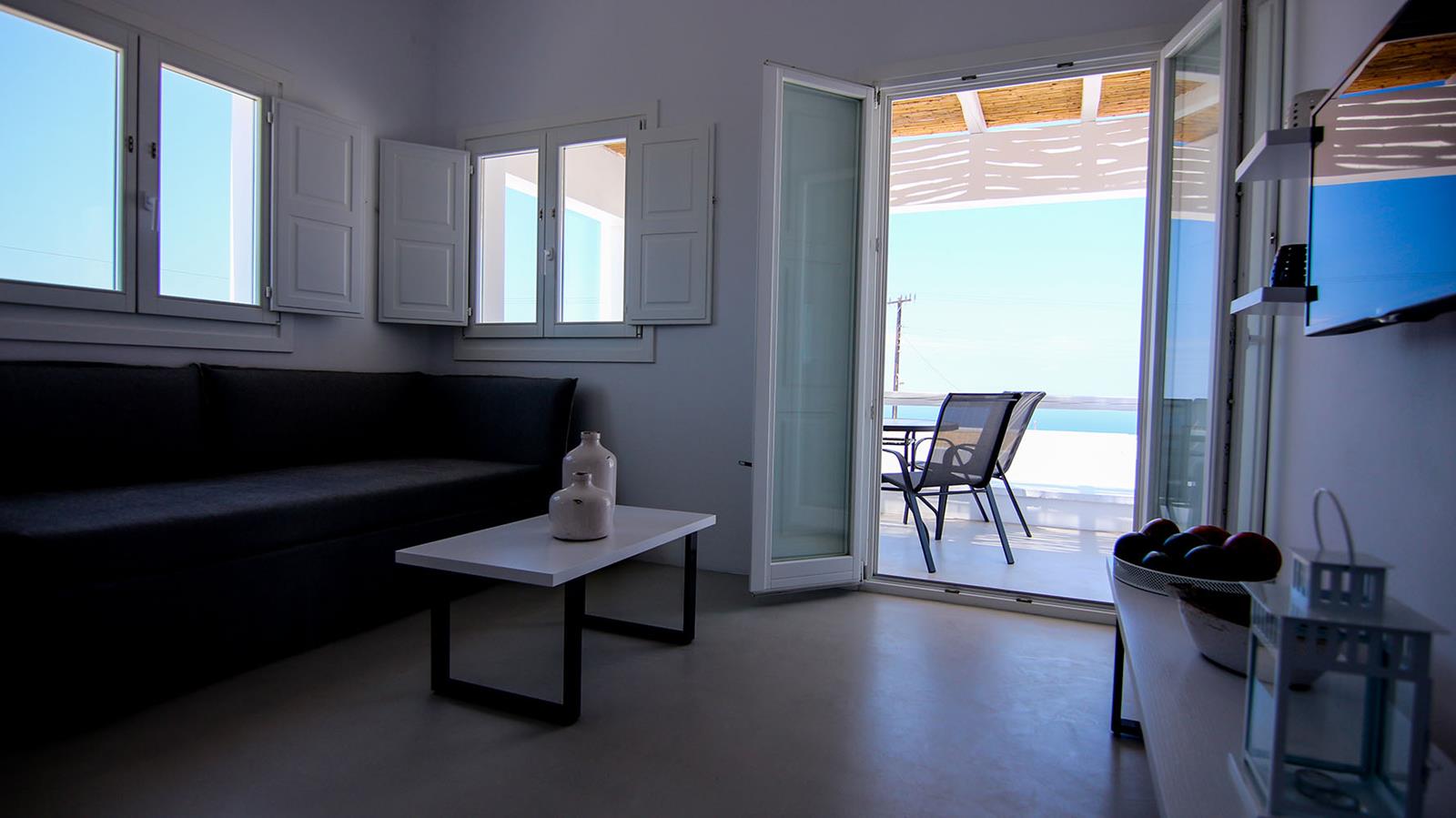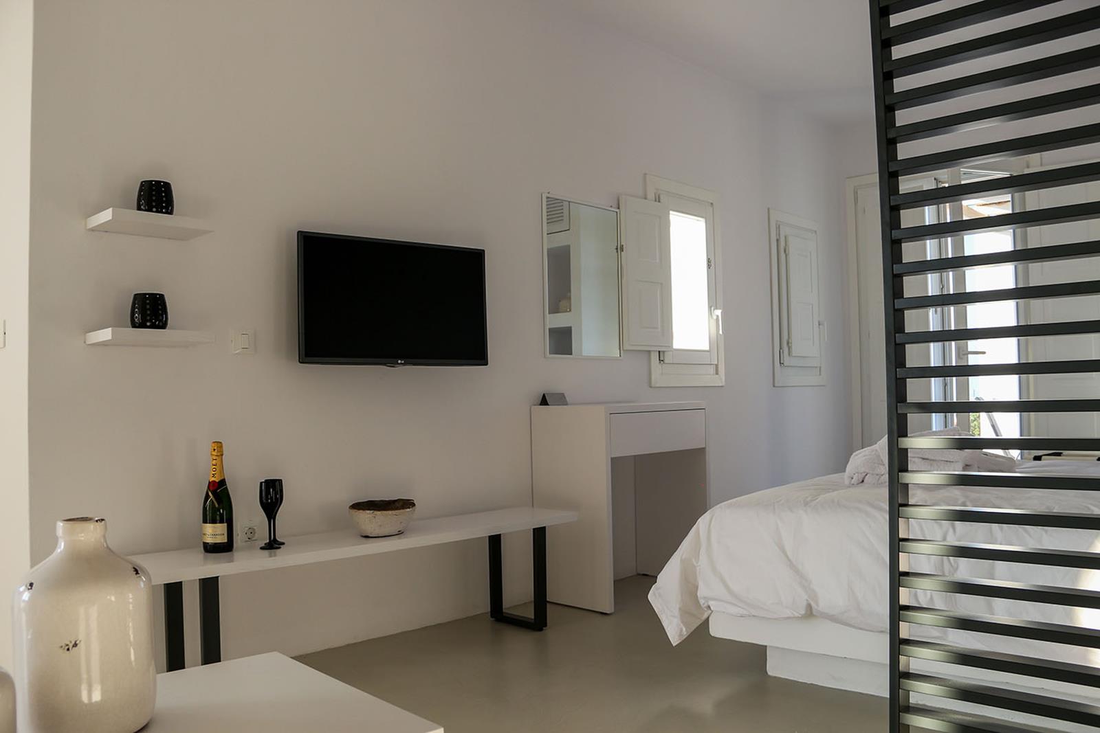 Each of the five villas at Lemon Tree Houses accommodates between two and five guests, making them a perfect choice for couples, families, or small groups of friends. While the villas share a consistent external style, every house has been individually designed and decorated, offering a unique atmosphere and distinctive interior touches that reflect the character of the space. All are spacious and stylishly minimalist, featuring queen or king-size beds, comfortable living areas with sofa beds, kitchenettes with mini-bar fridges, and modern bathrooms with high-quality amenities.