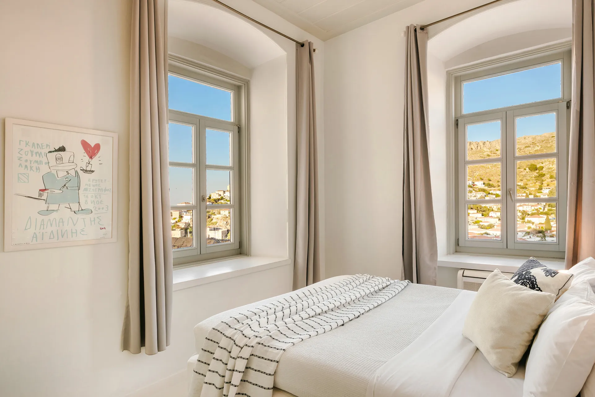 Originally built at the turn of the 20th century, this heritage property was fully renovated in 2008 and now stands as a chic and sophisticated boutique hotel, just a short seven-minute walk from the island’s picturesque port. Despite its central location, the hotel is surrounded by traditional buildings and pedestrian-only stairways, creating a serene and secluded atmosphere where guests can fully unwind. Each room is uniquely decorated, with tasteful touches that blend local character, traditional aesthetics, and balanced, calming colours. Several rooms offer breathtaking panoramic views over the town's cascading rooftops and the shimmering waters of the Argosaronic Gulf.