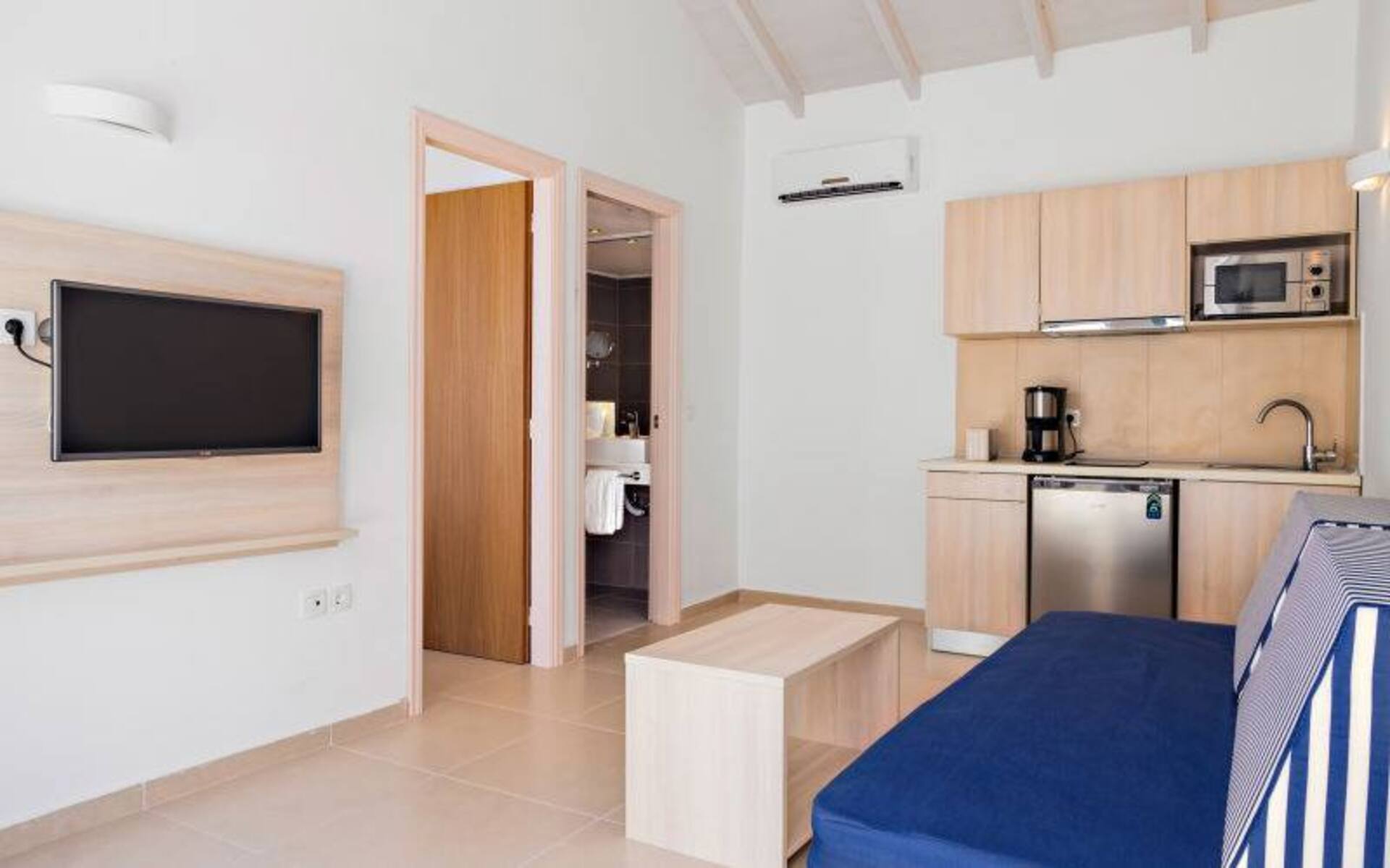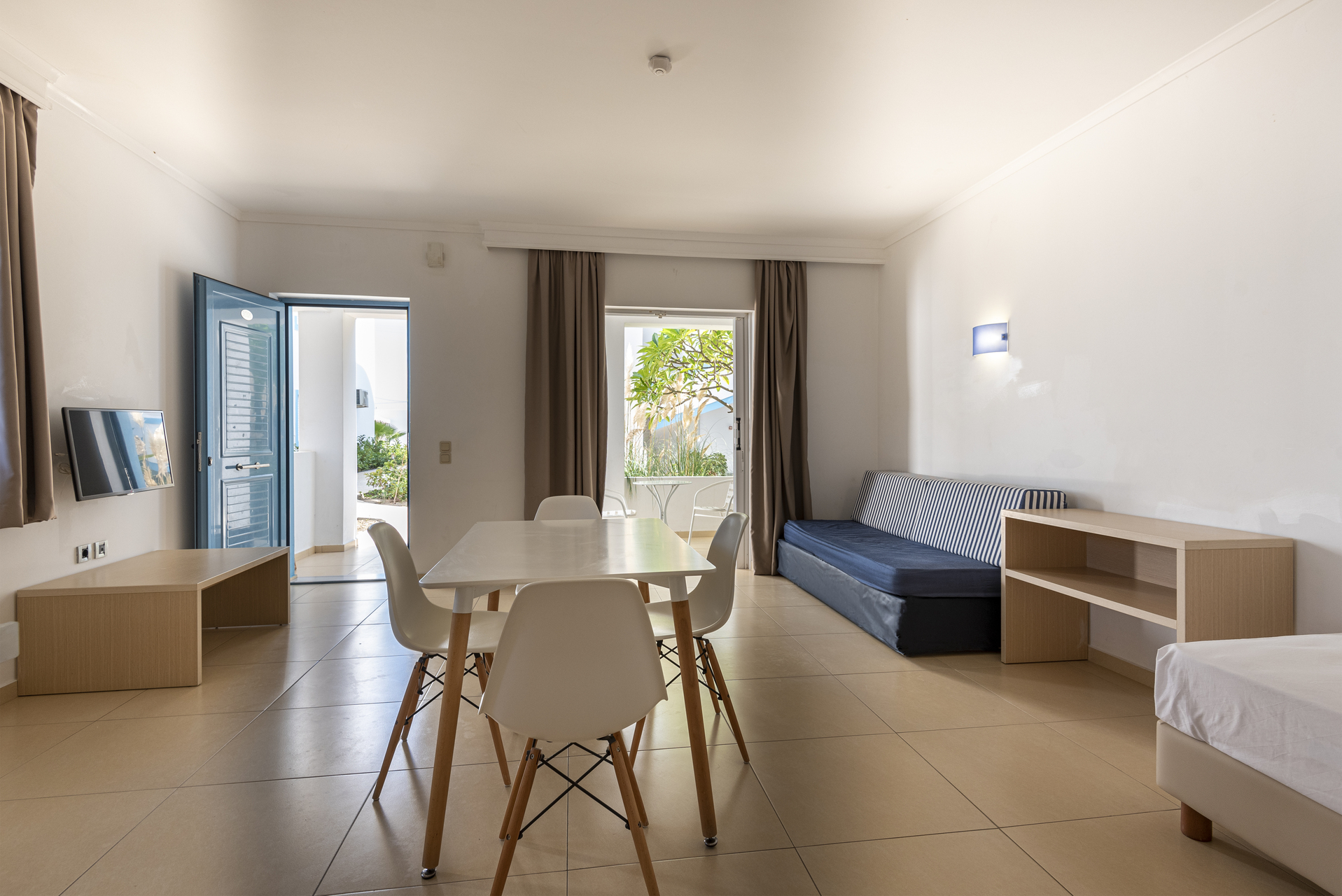 Accommodation at the Aegean Blu is both spacious and contemporary in design, equipped with modern amenities such as air conditioning, in-room safes, and balconies or terraces that offer scenic views of the surrounding landscape. These thoughtfully designed rooms aim to provide comfort and convenience for guests of all ages.