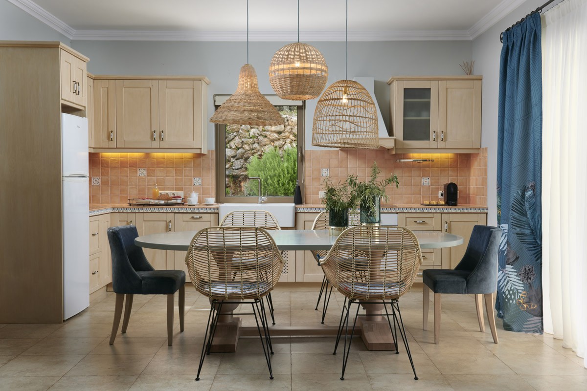 The design of Art Blue Villas is centred on high-end aesthetics, with a strong emphasis on detail, authenticity, and harmony with the environment. Interiors feature a combination of natural materials—wood, marble, granite—and a calming palette of earth tones. Each villa is furnished with hand-crafted furniture made by traditional artisans, and adorned with original artworks, adding a unique and personal touch to the living spaces.
