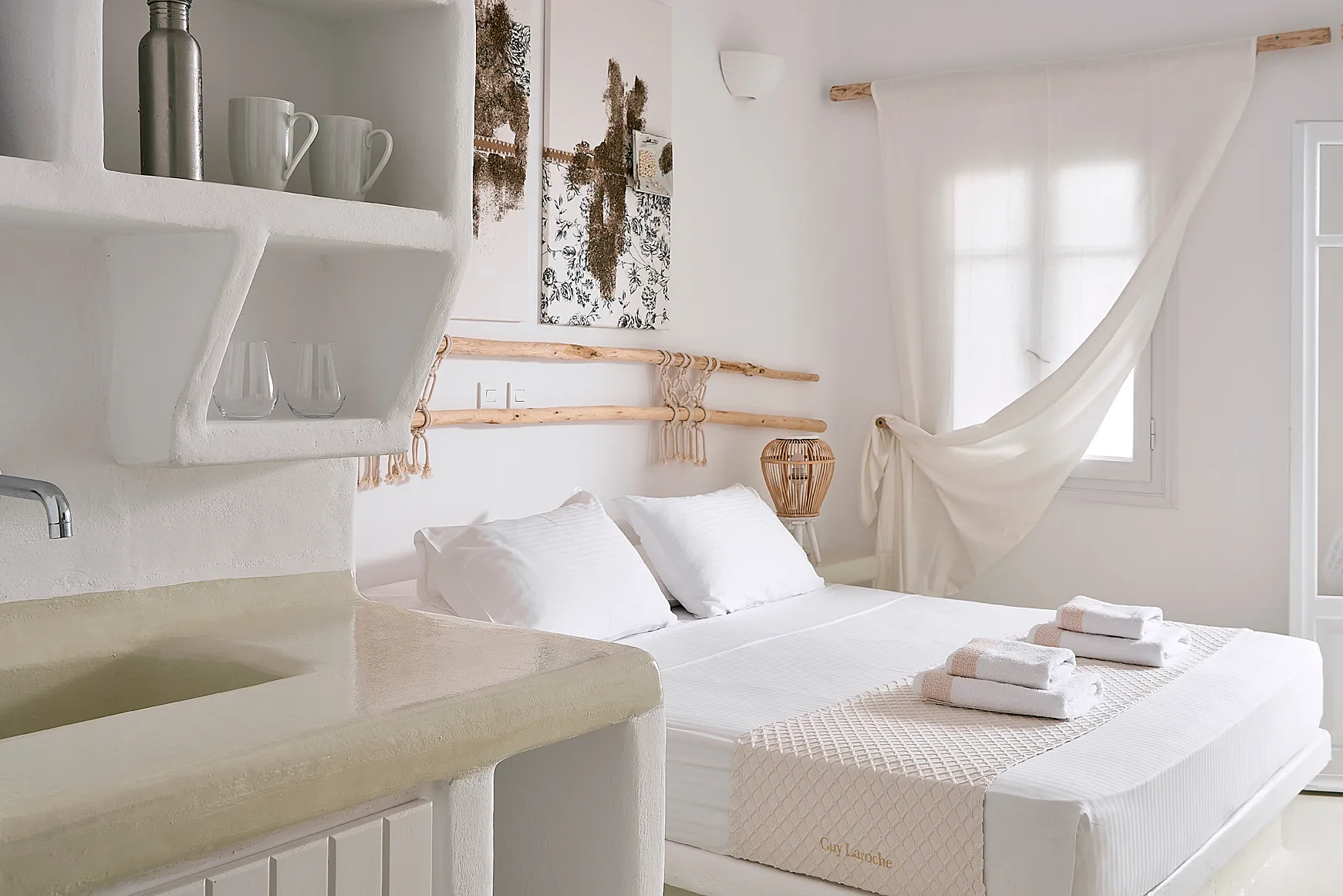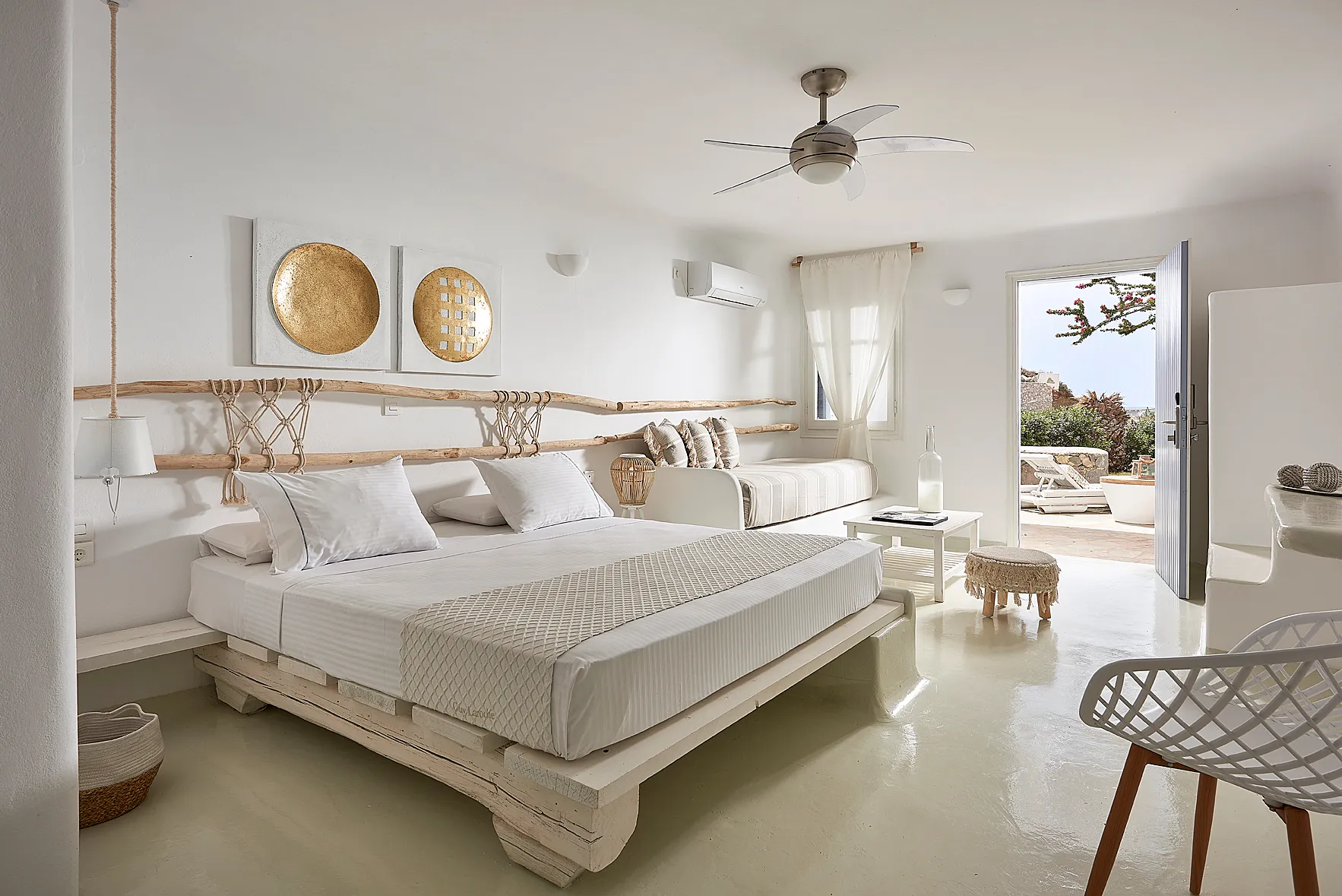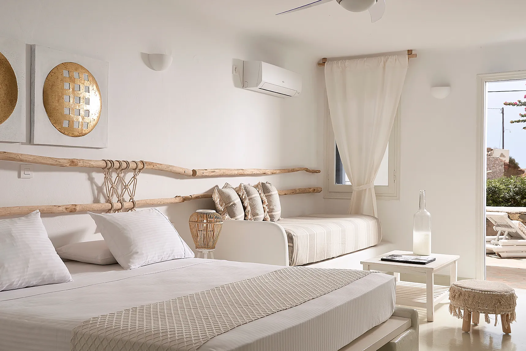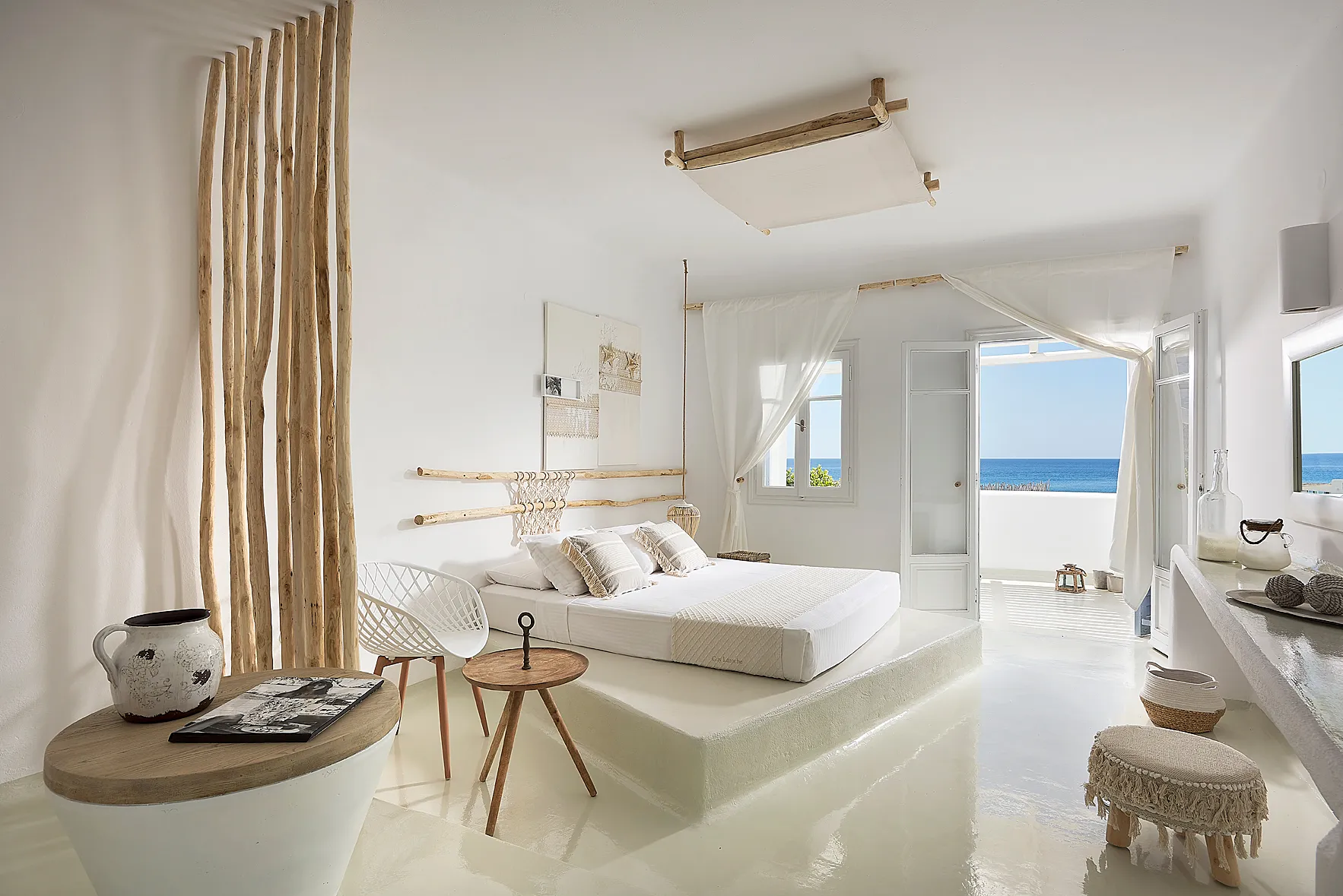 The design philosophy at Artemis Seaside Resort places strong emphasis on authenticity and detail. Inspired by the birthplace of Aphrodite, the hotel's aesthetic avoids excess and instead highlights natural materials, island craftsmanship, and spatial harmony. This thoughtful approach extends to the common areas, where natural light, calming colors, and curated furnishings create a space that promotes peace and relaxation.