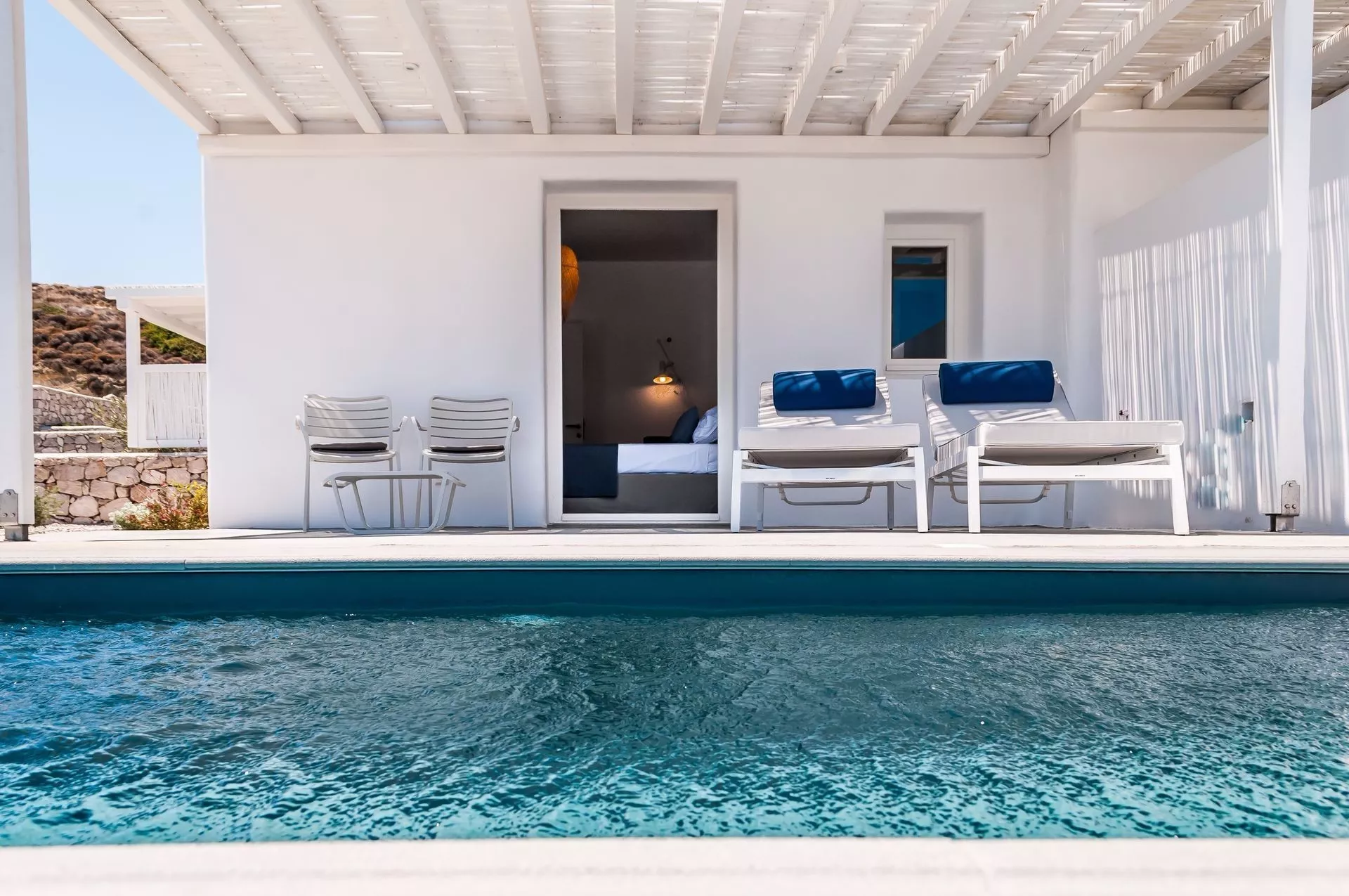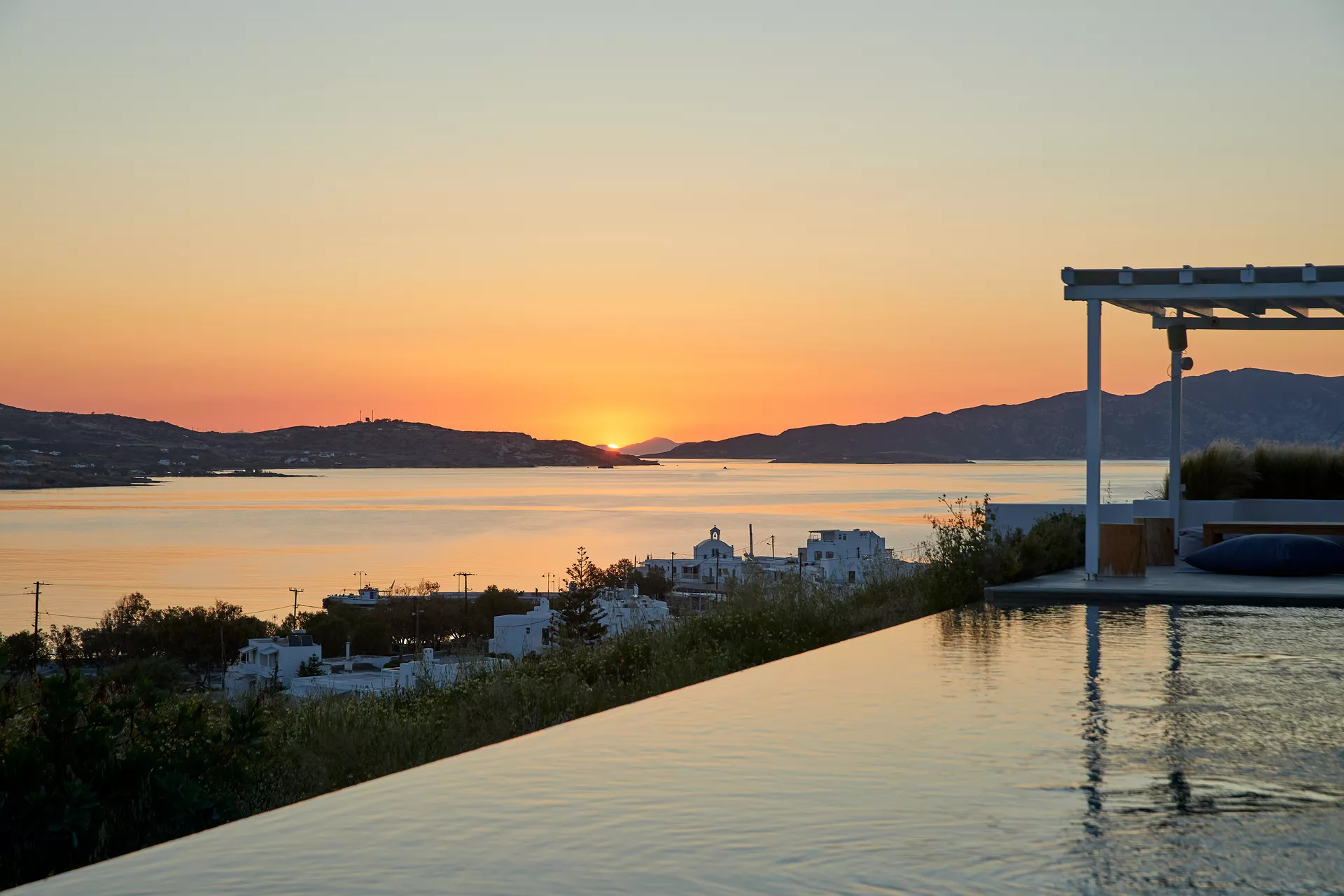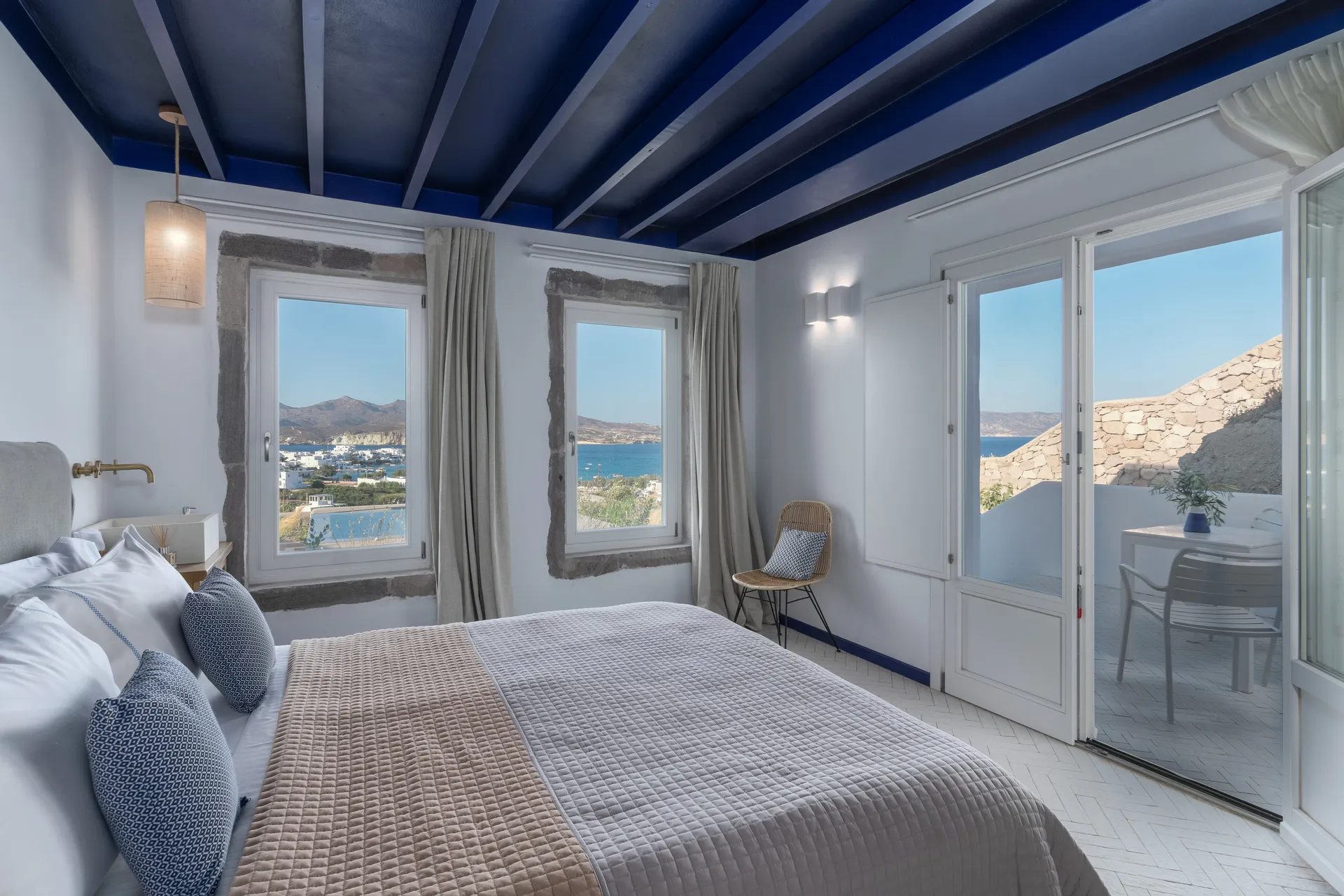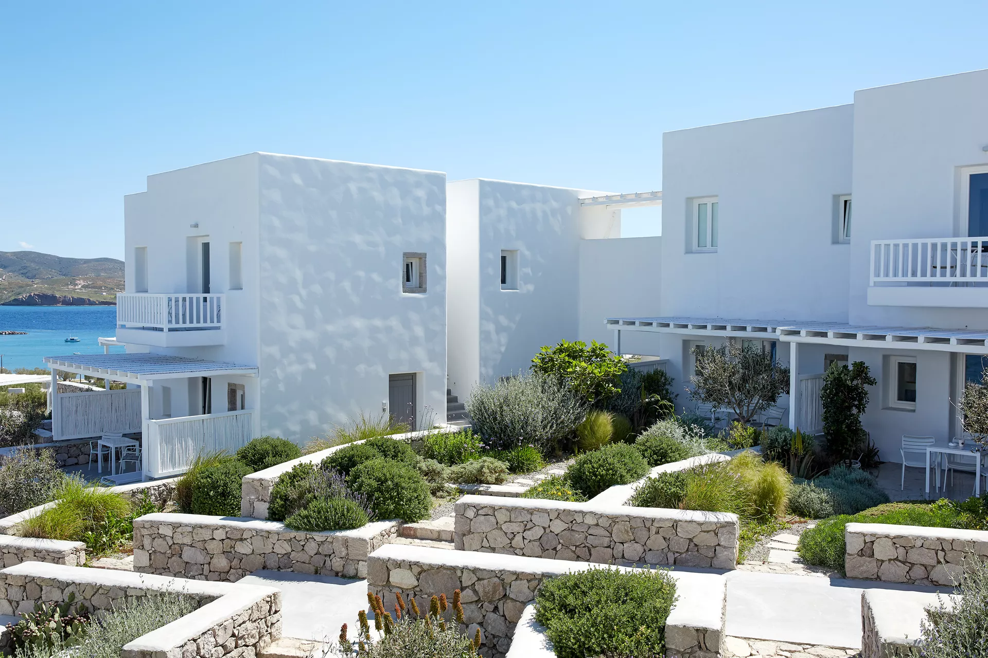 Milos Breeze Boutique Hotel is a 4-star retreat set on a clifftop in Pollonia, offering uninterrupted panoramic views across the Aegean Sea and nearby islands such as Kimolos, Sifnos, and Polyaigo. Designed with a minimalist Cycladic aesthetic, this boutique property blends traditional architecture with modern luxury to create an atmosphere of refined elegance and serenity. Surrounded by nature and overlooking the bay, the hotel provides a tranquil escape that captures the essence of island living.