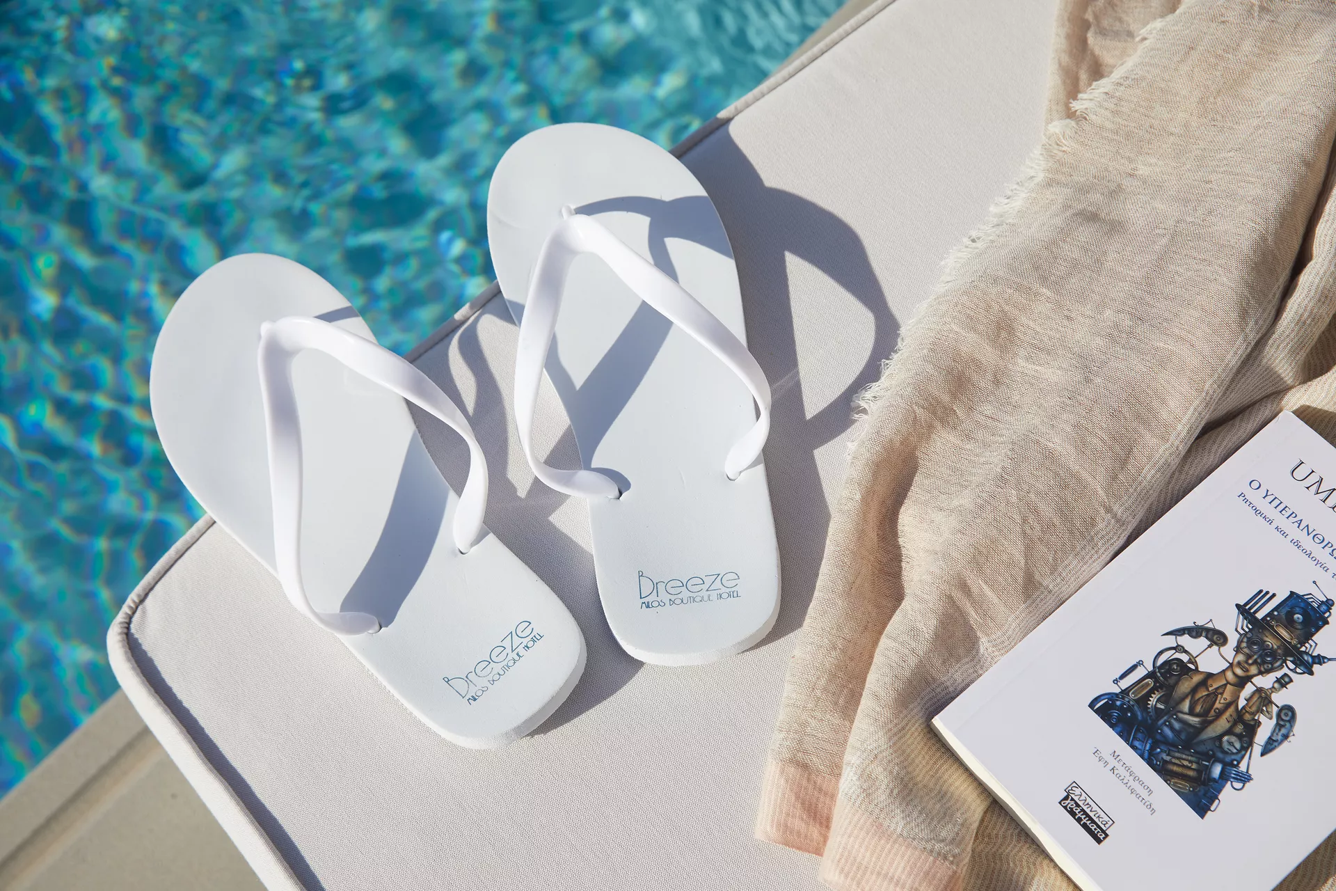 Each morning begins with a traditional Greek breakfast served on the sea-view terrace, featuring local ingredients such as Greek yogurt and organic honey. The on-site Blue by Breeze Restaurant offers a refined dining experience, showcasing Greek and Mediterranean flavours paired with carefully selected wines. Guests can also enjoy cocktails and refreshments throughout the day at the poolside bar.