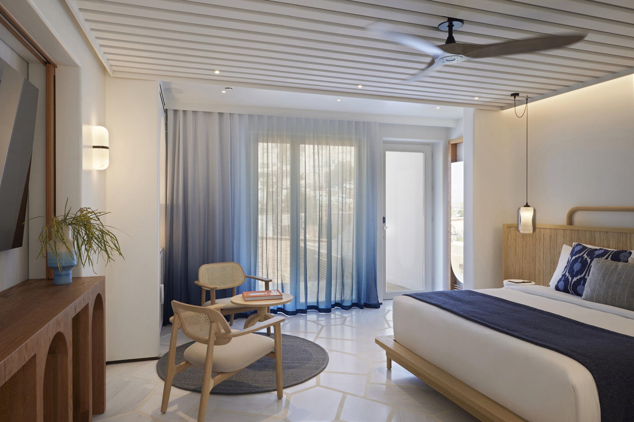 Avant Mar’s location on Piperi Beach not only provides stunning sea views but also offers immediate access to the cultural energy of Naoussa. Guests can stroll along the shoreline to reach the town’s iconic harbour, boutique shops, and lively nightlife, making the resort both a serene hideaway and a gateway to island exploration.