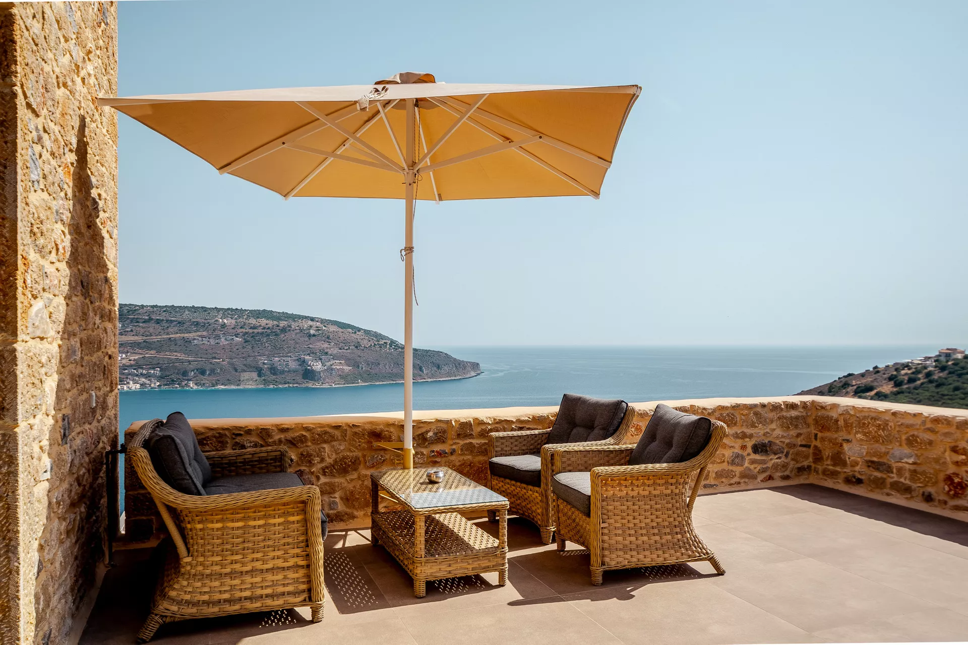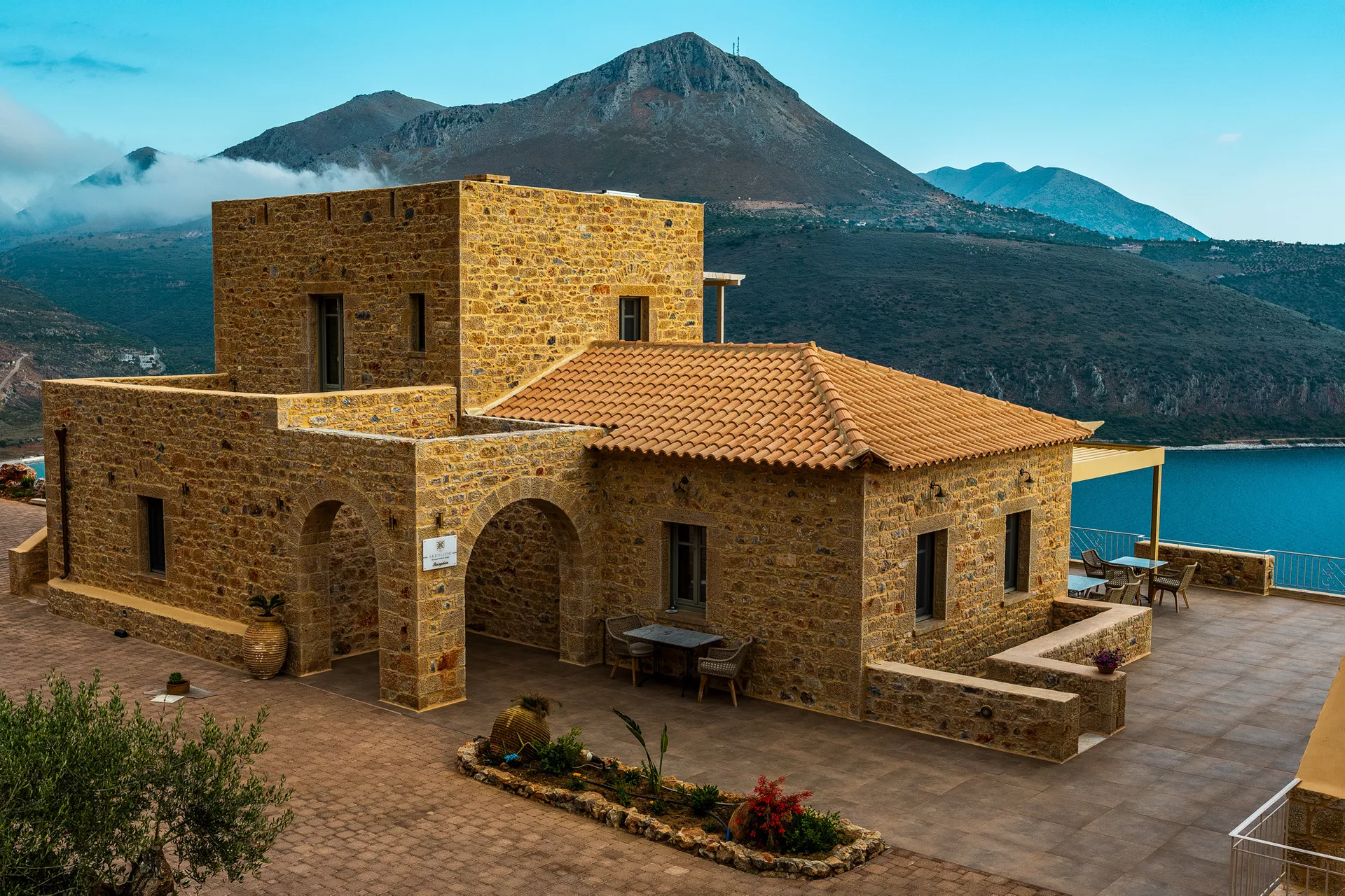 Akrolithi means “edge of the rock”. The name of this family owned hotel was chosen deliberately – guests here feel betwixt the sky and the sea on the western side of Itilo bay on the Mani. The characteristic towers offer an emblematic and powerful presence on the skyline offering travellers the ideal introduction to the secrets of Mani hospitality.
