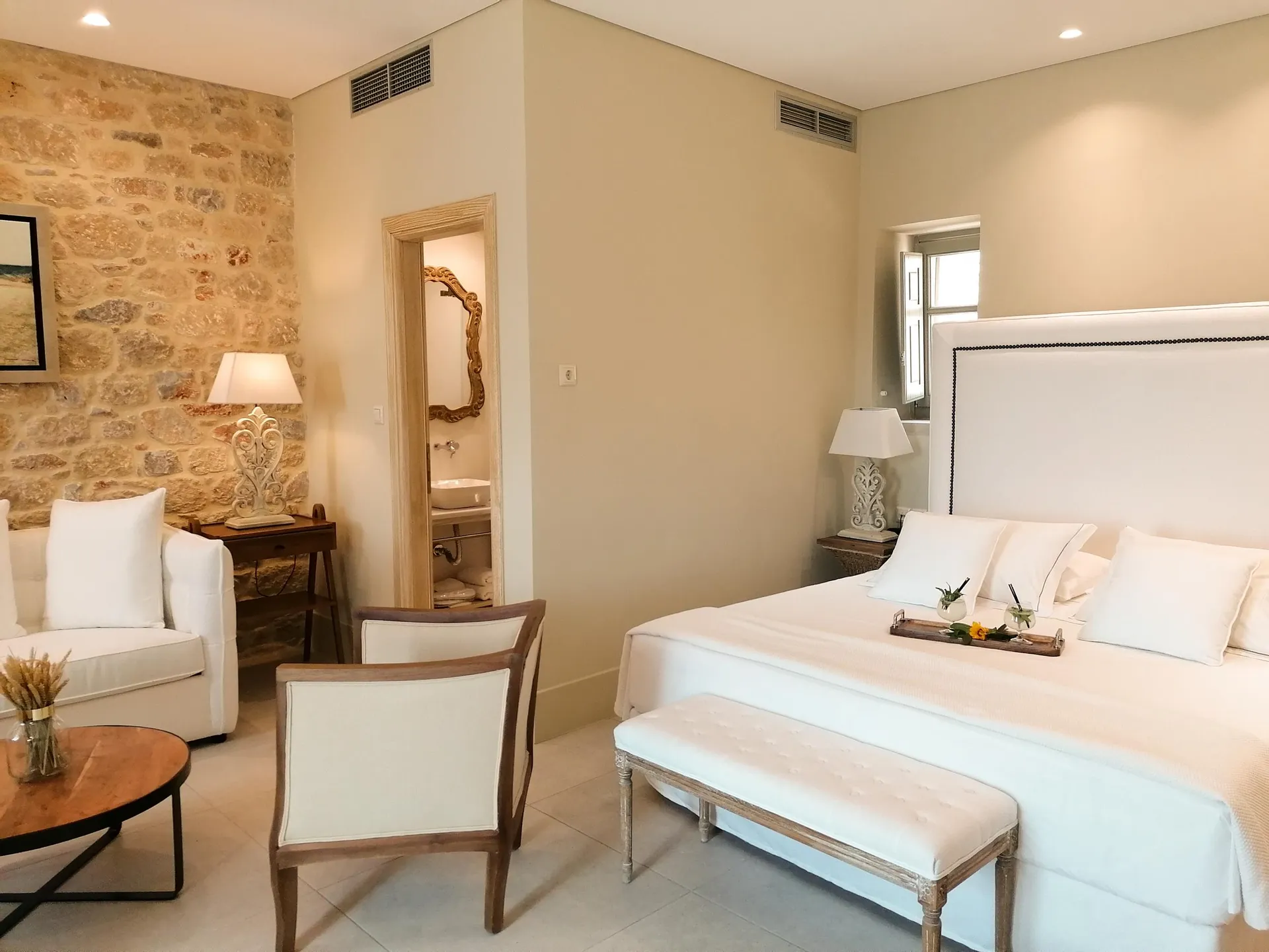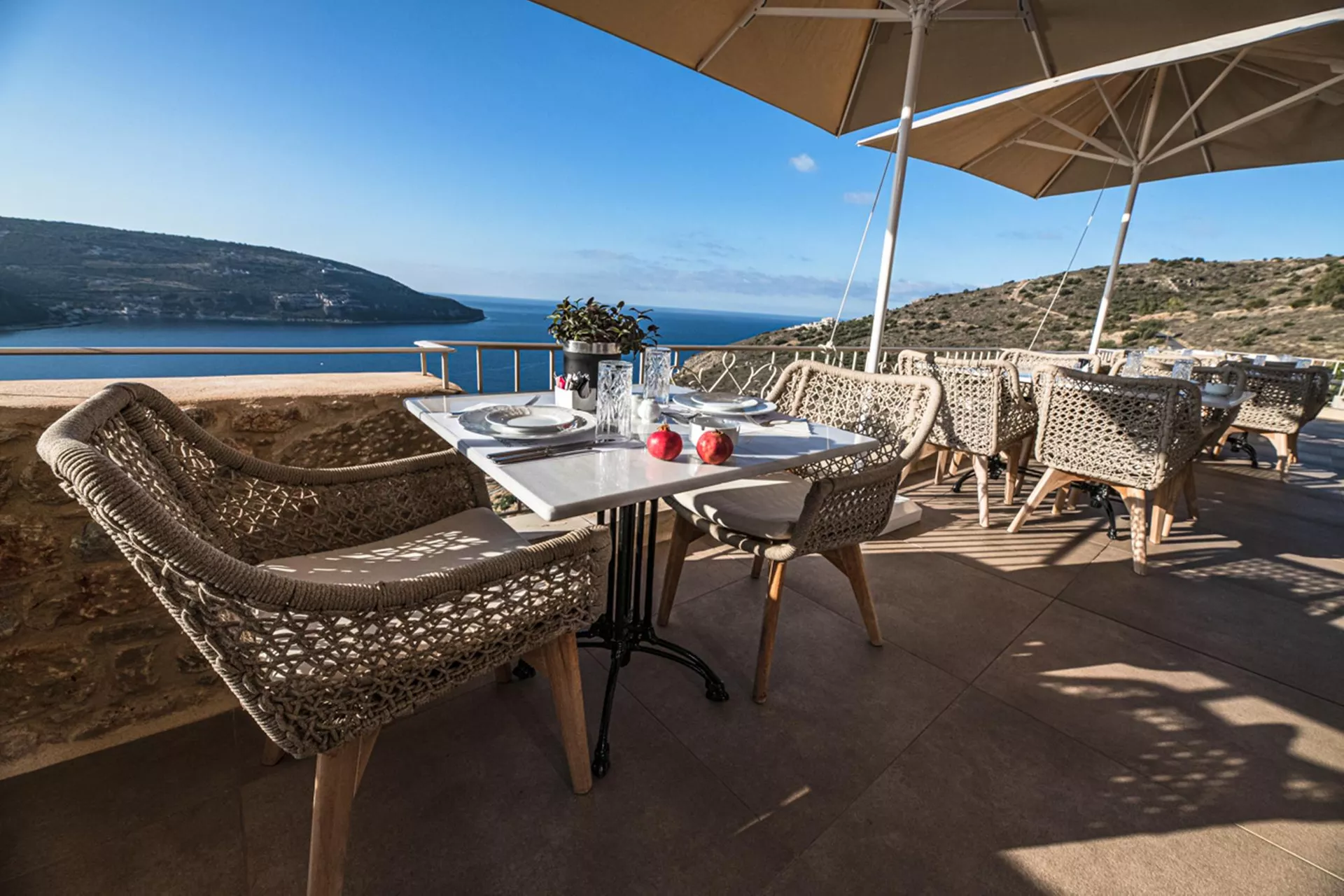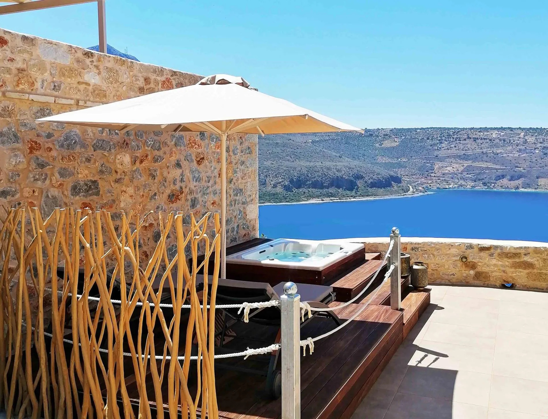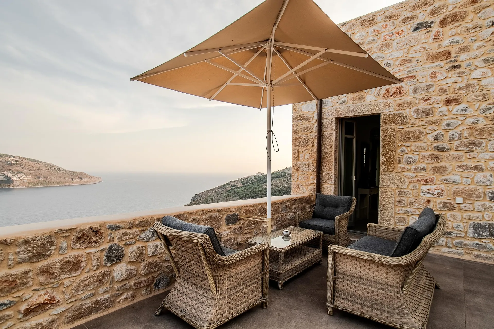 The outdoor spaces feature lots of local stone to respect the unique local lamdscape. The gardens are filled with the aroma of sage, oregano, thyme and citrus fruit. The family owners are incredibly proud of their perennial olive trees that were meticulously transported from their original home. The Akrolithi Boutique Hotel is proud of being the first in the Mani to be certified as eco-friendly by the international group Green Key.