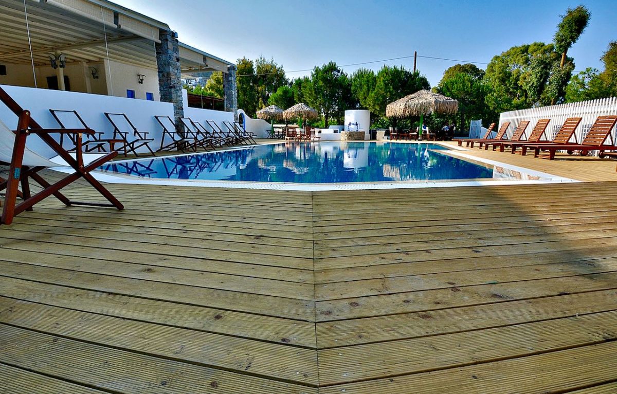 Dining at Coralli Sea-Side Resort is a highlight, with Capari Restaurant serving breakfast from early morning and continuing throughout the day with an appealing menu of traditional Greek dishes prepared with organic products grown on Serifos. Meals can be enjoyed on a spacious terrace overlooking the pool. For a more casual setting, the Hippie Beach Bar offers light snacks, fresh juices, coffee, and cocktails from mid-morning until late at night. The bar’s relaxed atmosphere, shaded seating, and lively soundtrack create the ideal environment to watch the sunset or sip a drink between swims.