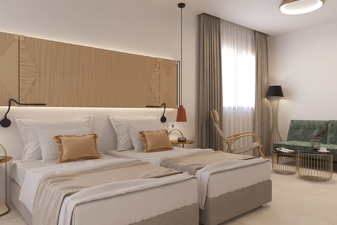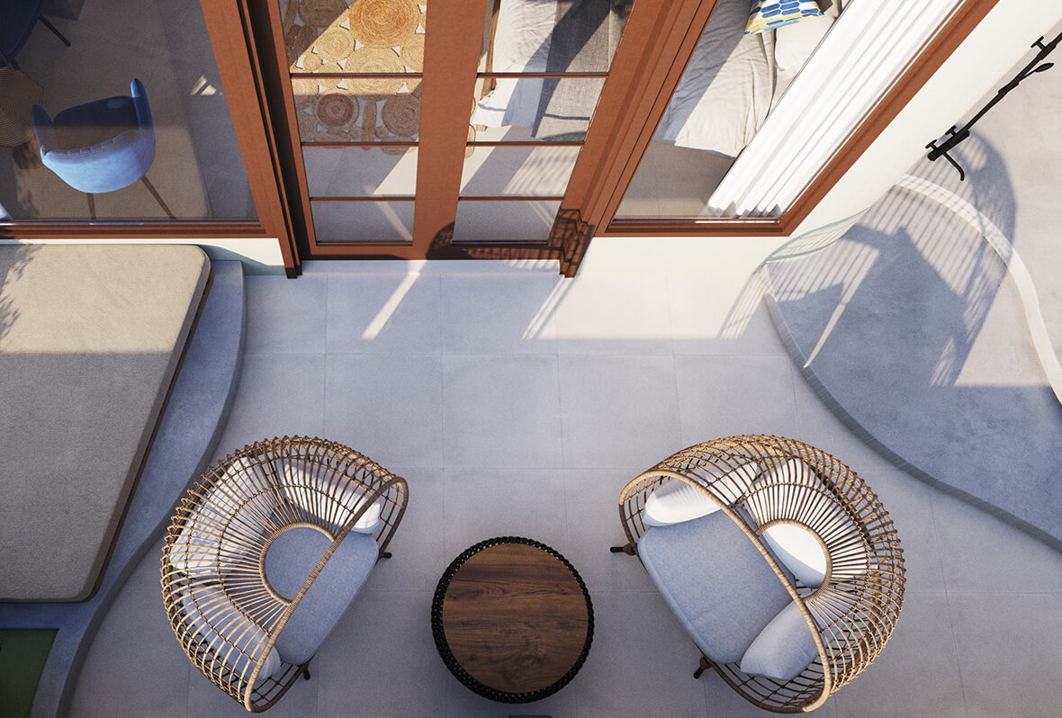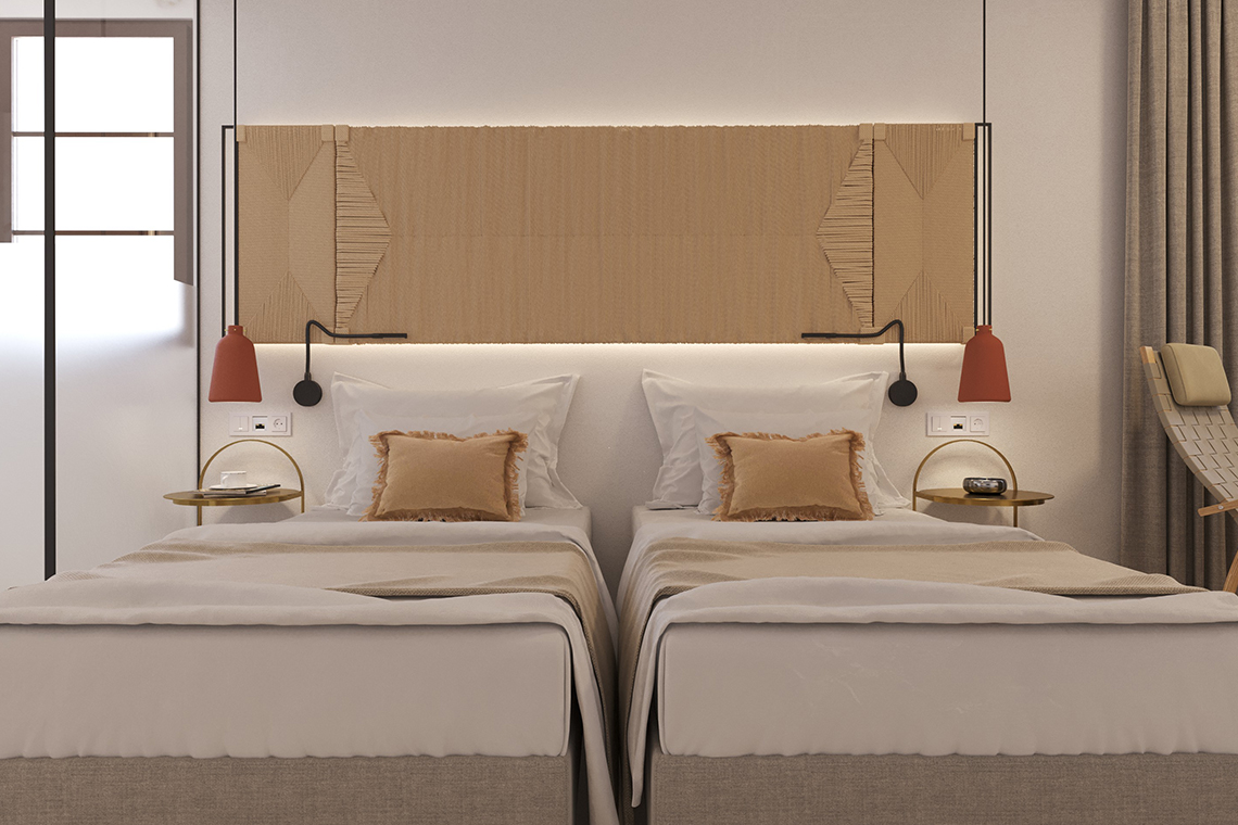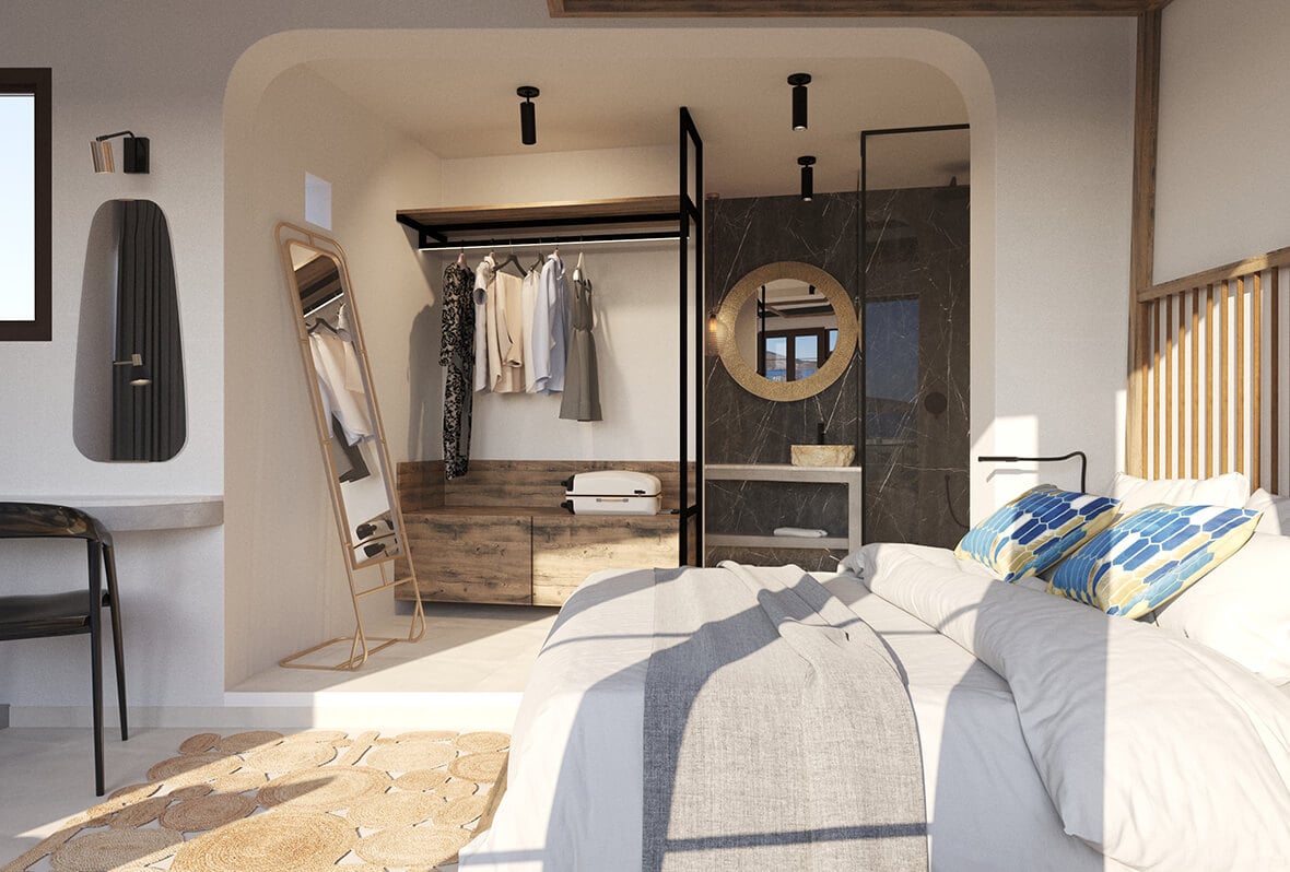 The property features ten individually designed guestrooms and suites, each with a private terrace offering panoramic views of the mountainside or the sea. Interiors blend authentic elements with modern comforts, combining natural textures, subtle elegance, and thoughtful amenities. Each room is equipped with plush bedding, complimentary wireless internet, bathrobes, slippers, and daily turndown service to enhance every stay.