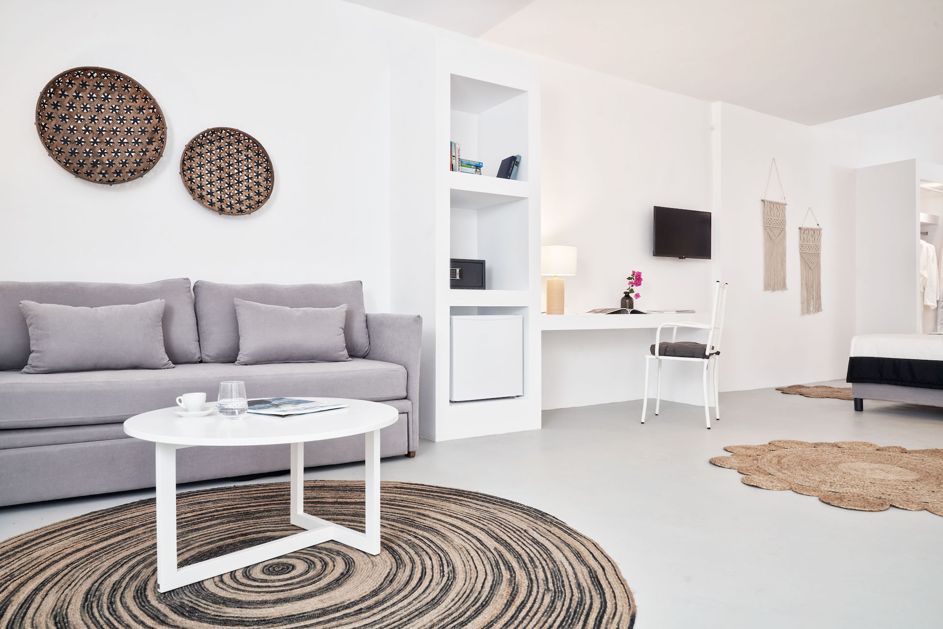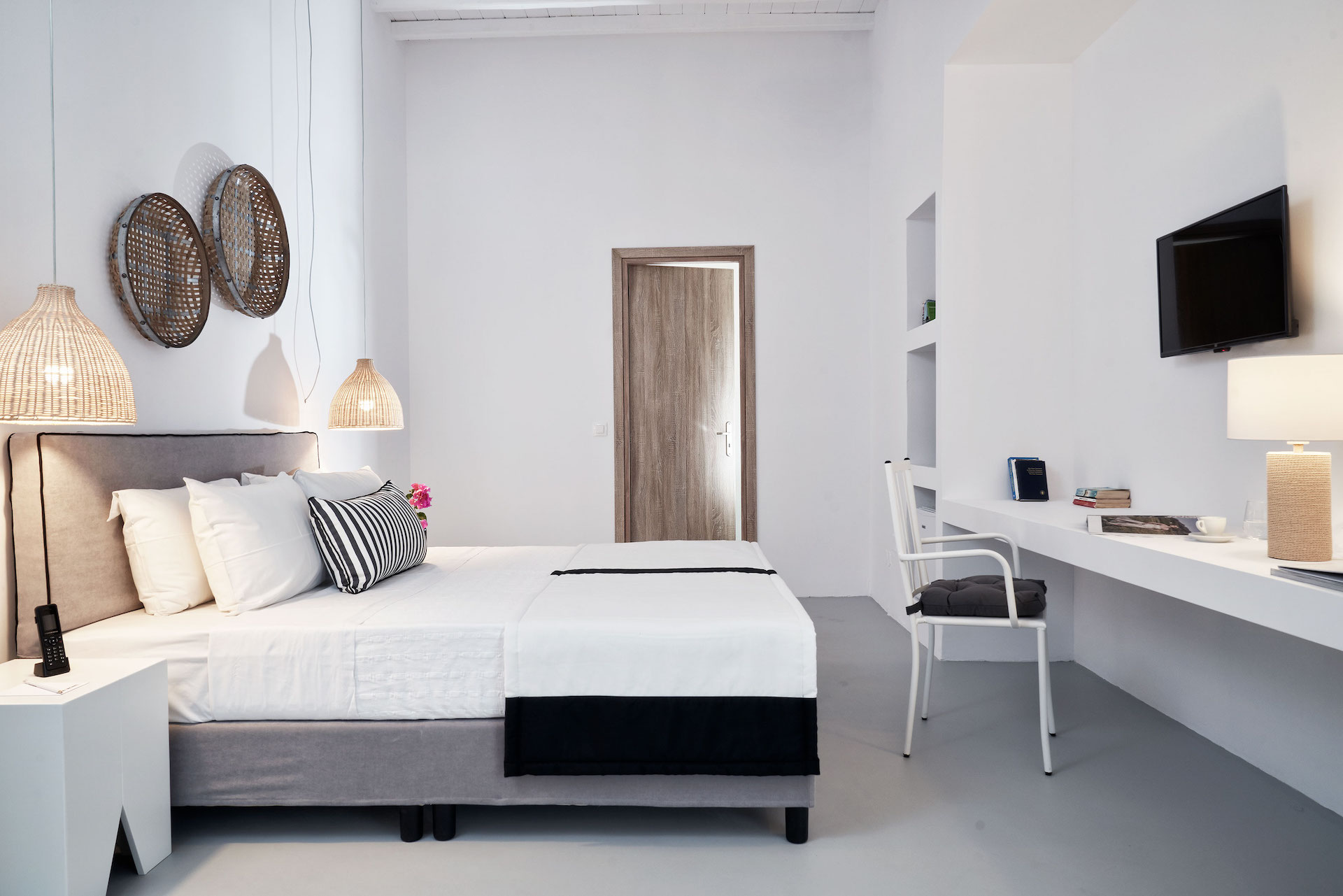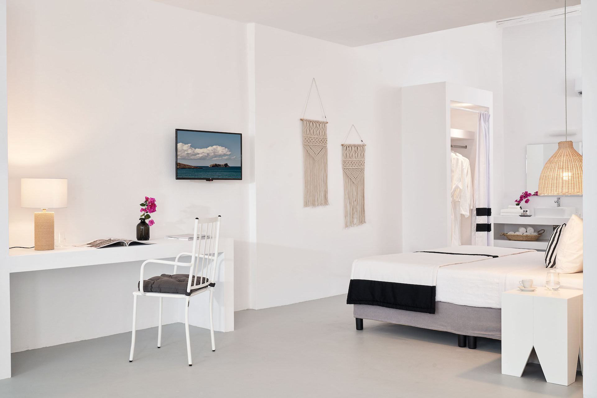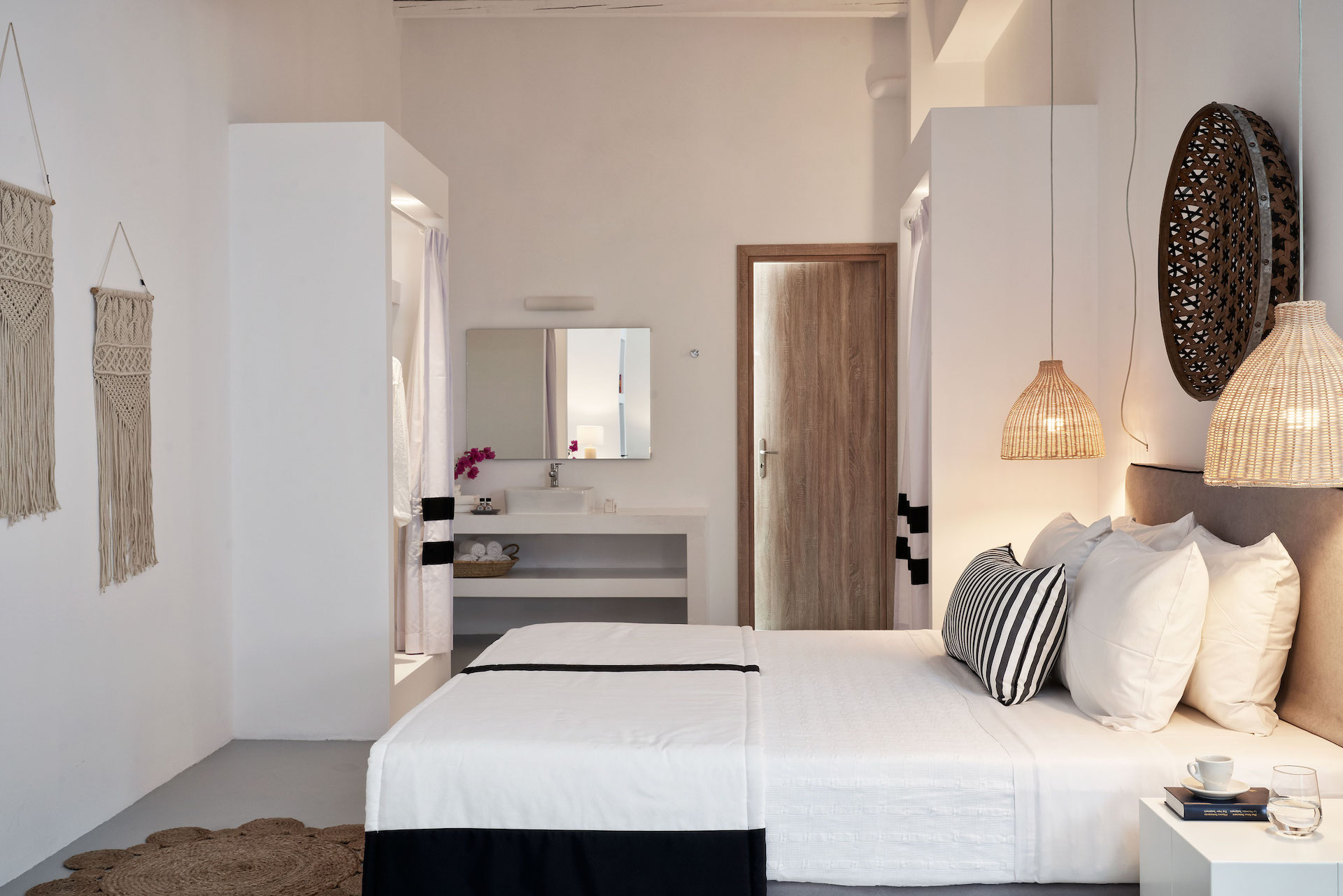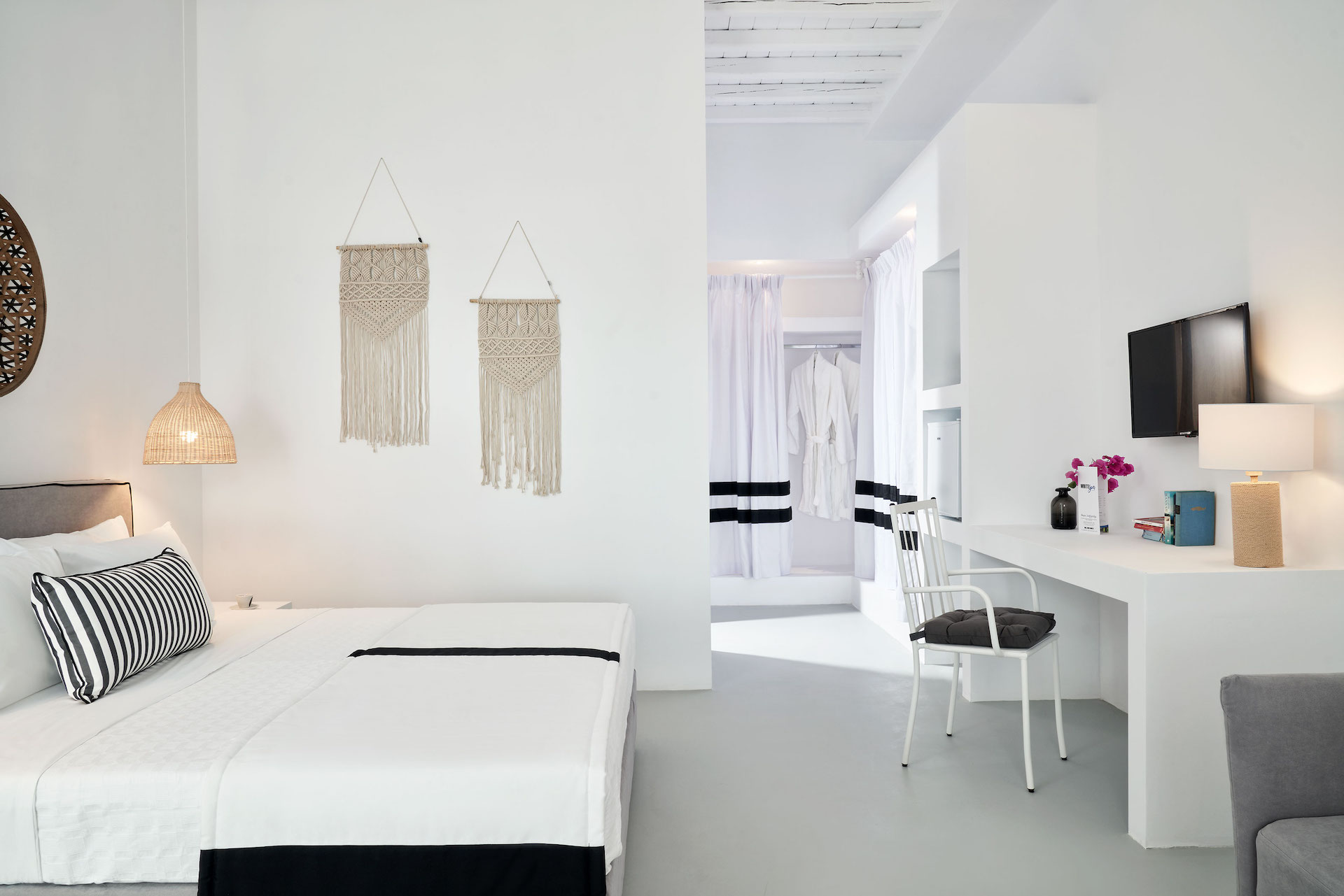 Mr & Mrs White Tinos blends simplicity with understated luxury. The interiors balance elegant minimalism with Cycladic charm, creating a calm, welcoming environment. Each room and suite is thoughtfully appointed, offering modern comforts while maintaining a connection to the local character. Neutral tones and natural materials enhance the sense of tranquillity, allowing the natural beauty of Tinos to take centre stage.